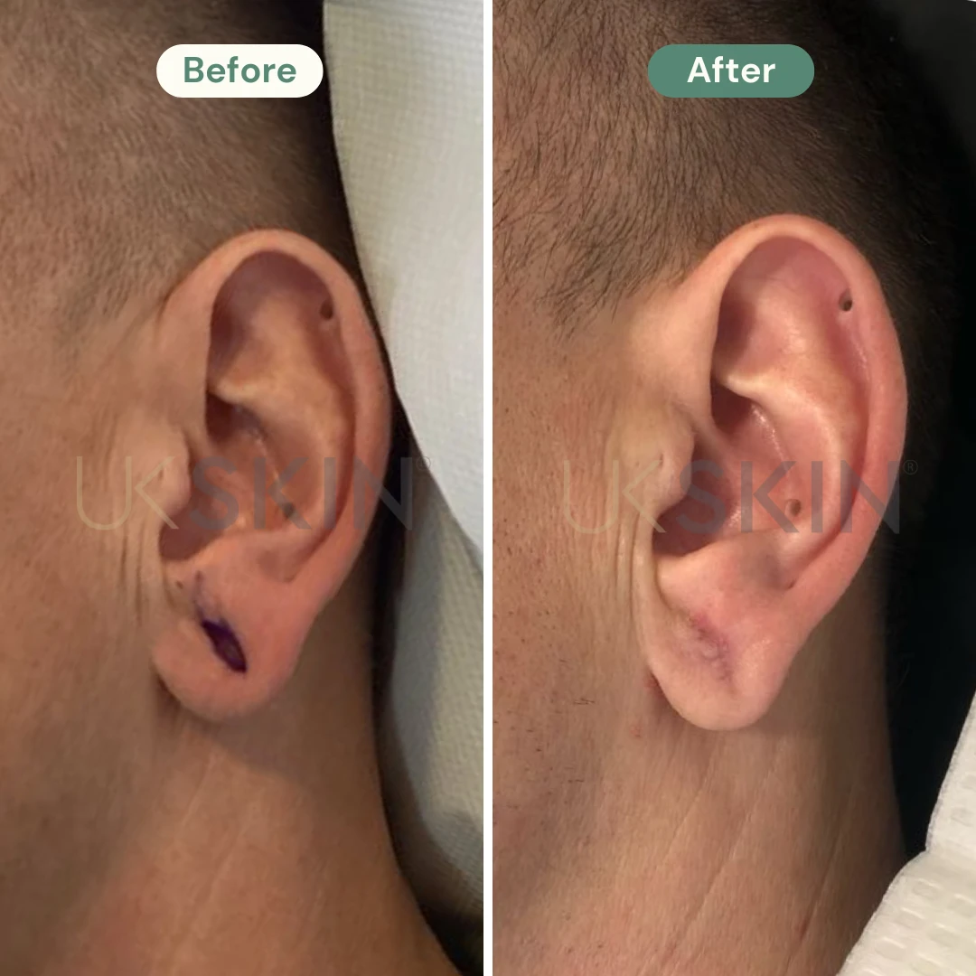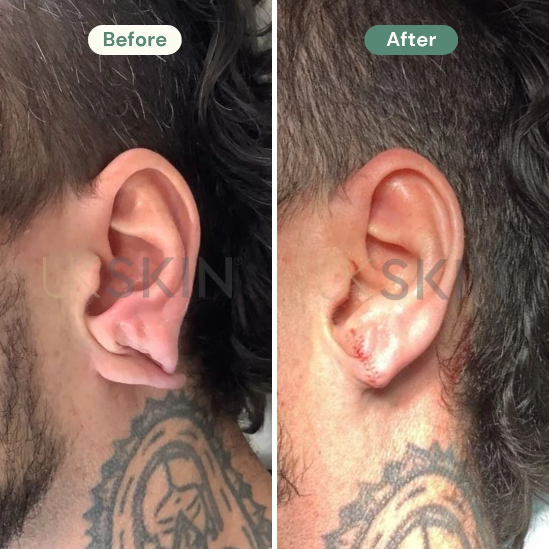 Dr. George is a Consultant Plastic Surgeon at UKSKIN with extensive experience in repairing split and stretched earlobes. His precise surgical technique and artistic attention to detail allow him to restore a natural, balanced appearance that complements each patient’s features.