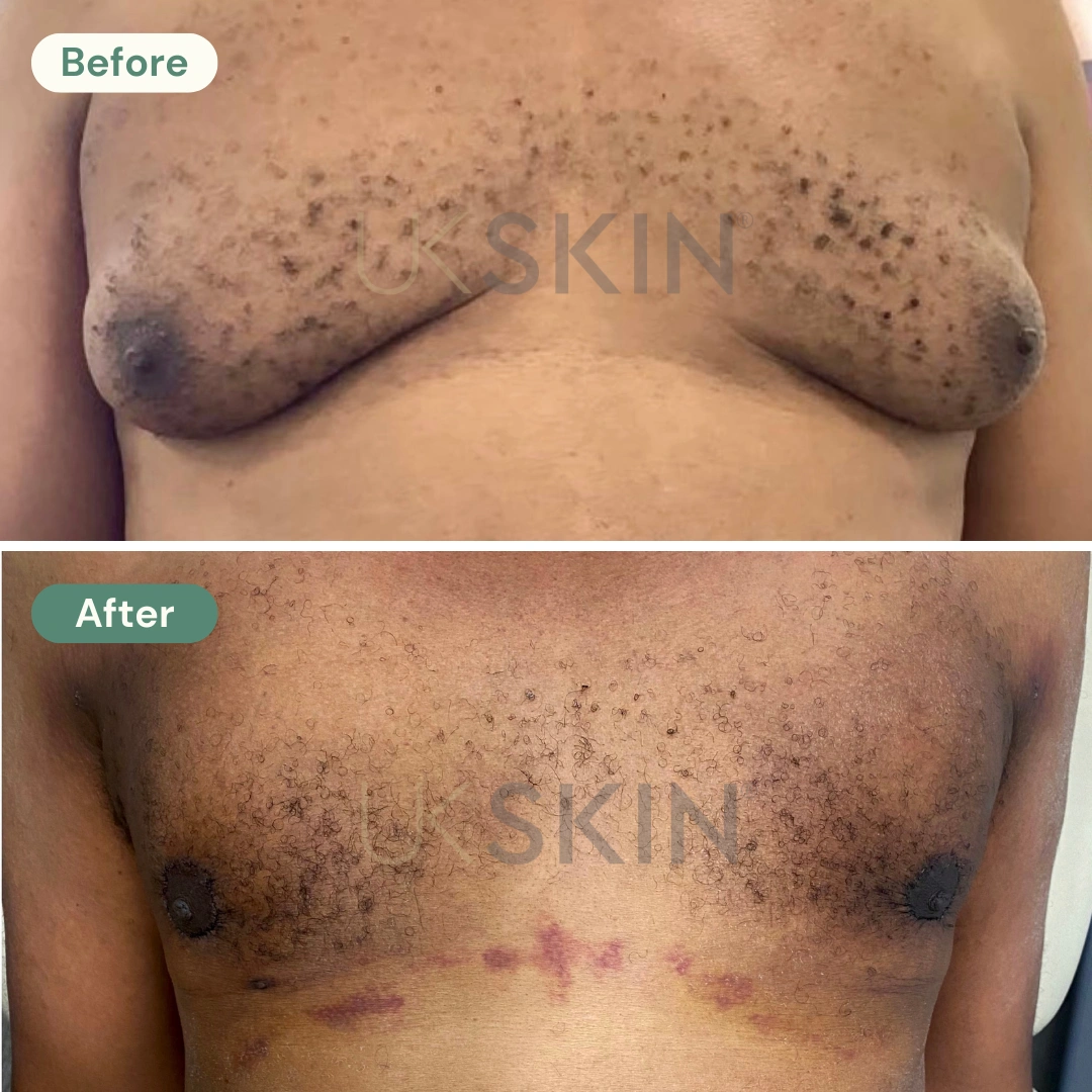 At UKSKIN, our surgeons use a combination of direct gland excision and VASER liposuction, with the option of Renuvion skin tightening, depending on the level of correction needed — all under local anaesthetic with or without sedation.